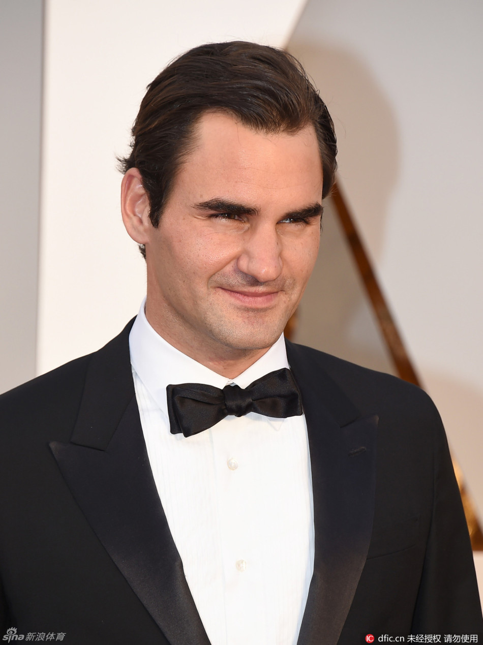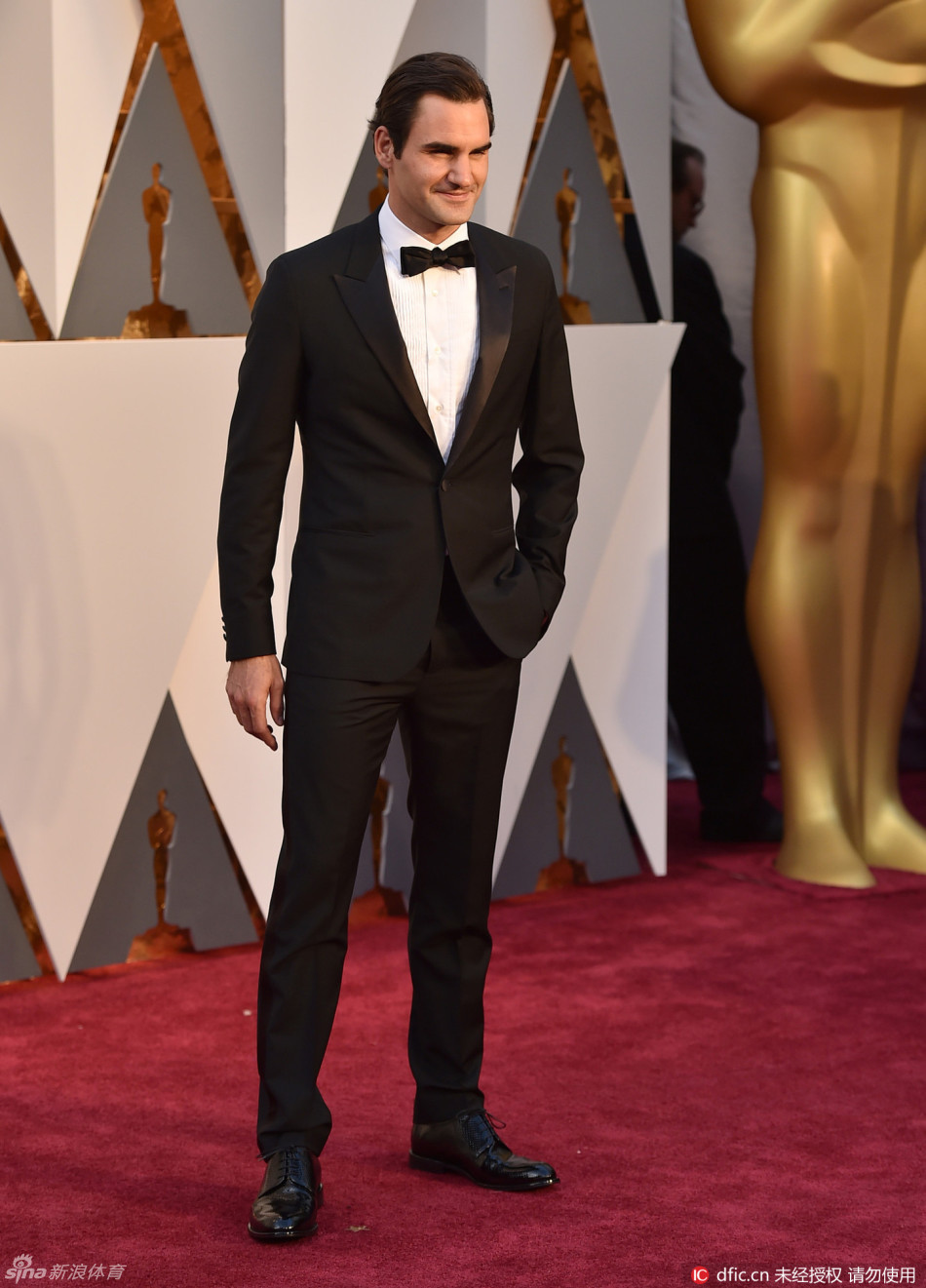 北京时间2月29日,美国洛杉矶,第88届奥斯卡金像奖颁奖典礼,费德勒西装帅气亮相红毯仪式。