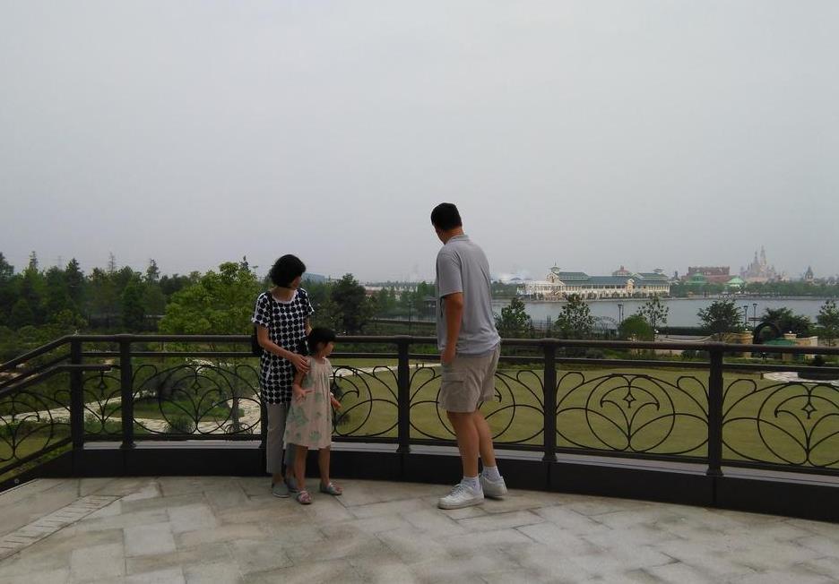 上海迪士尼度假区正式开园。在开园盛典活动中,身为荣誉大使的姚明带领妻女游览,三人在酒店露台大玩合影。