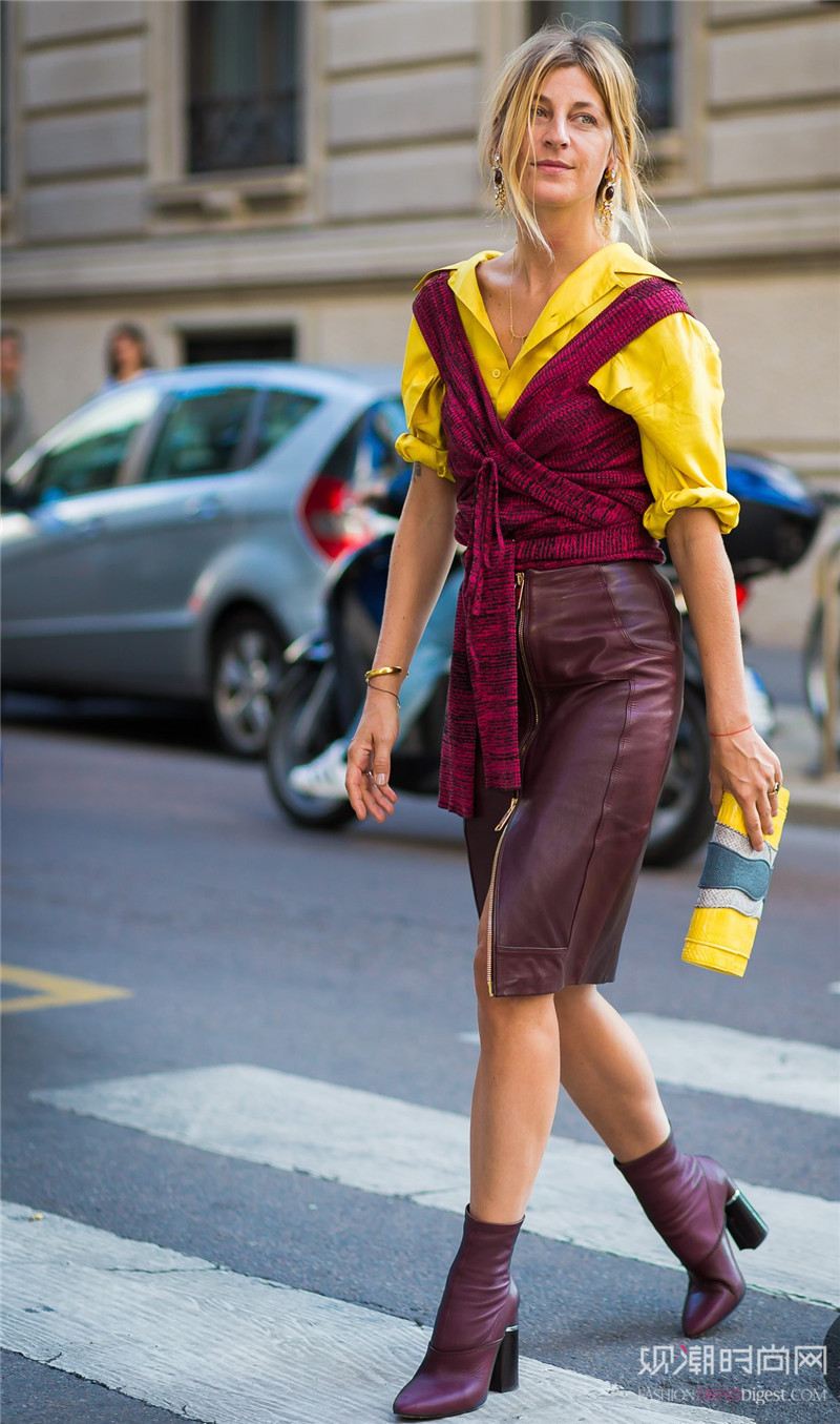 一件A字短裙就能穿出休闲感十足的效果,搭配采用同色短靴,使得搭配显得更加整体。