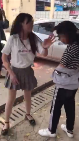 在2分半的现场视频中,2名女生不停对1名女生扇脸打耳光,甚至将其踹倒在地,还进行语言侮辱。