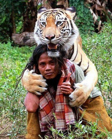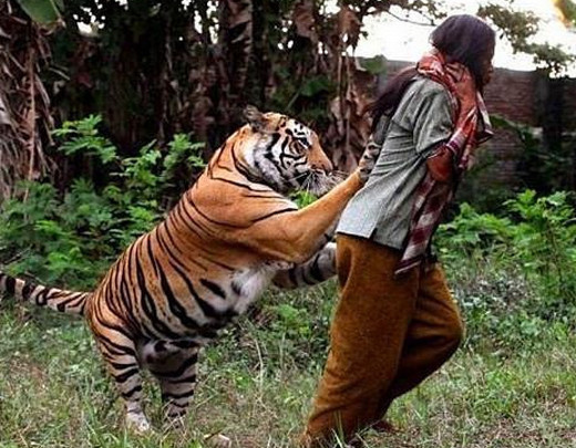 她们的感情很深,老虎还经常驮着她去散步,看到的人都羡慕她,都说她的宠物很牛。