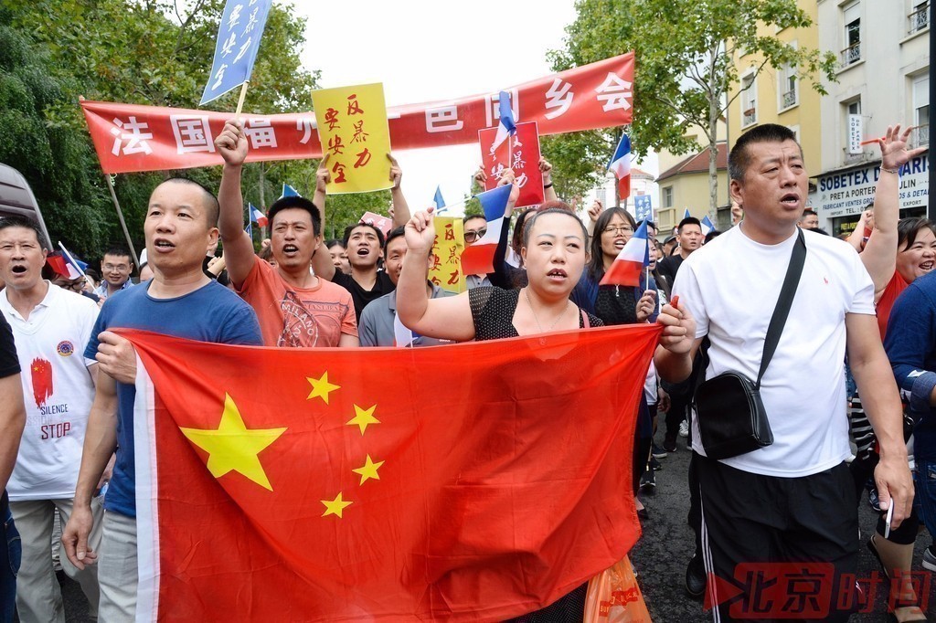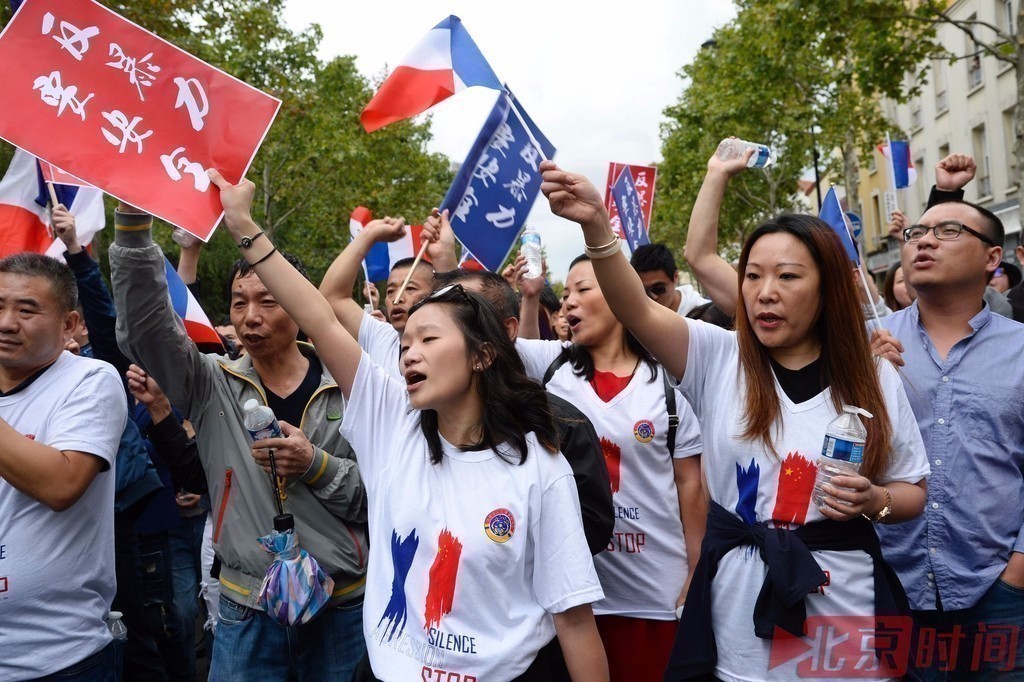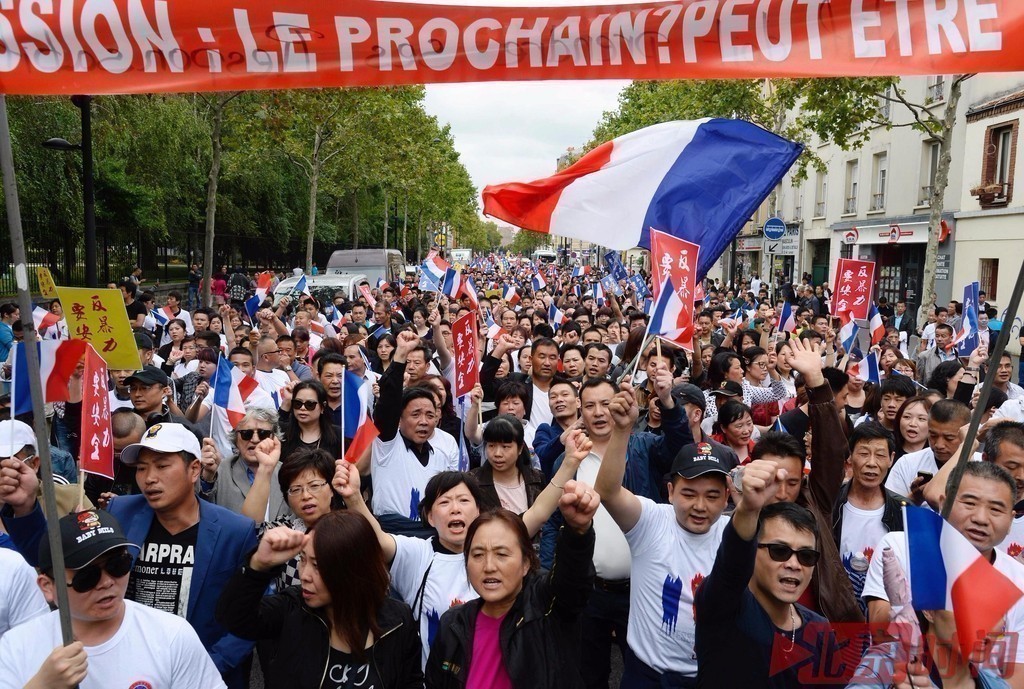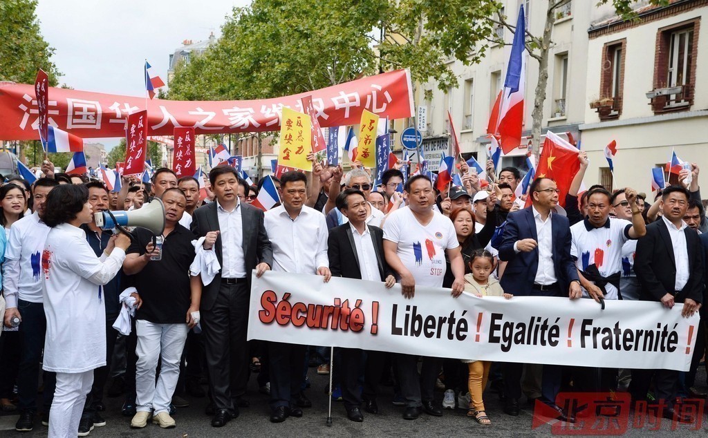 当地时间2016年8月21日,法国巴黎,当地华人参加游行,呼吁保障华人安全,创造更安全更平等的社区环境。
