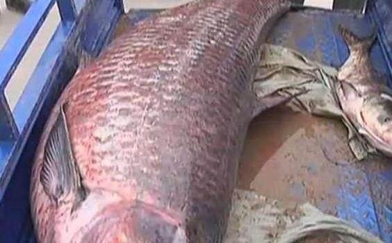 看到这条大青鱼周围的白鲢没有,那条白鲢6斤多!做个对比,可想而知这条“青鱼王”得有多大。