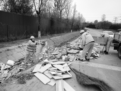 京承高速未来科技城出口有人倾倒垃圾。雾霾天还这么干,真缺德!”“17日,一大早开车经过来广营桥,发现附近偷倒了一大片渣土。”……近来,本报热线陆续接到市民电话或留言,反映公路上偷倒渣土的问题。虽然道路养护部门第一时间进行了清理,但问题仍是层出不穷。