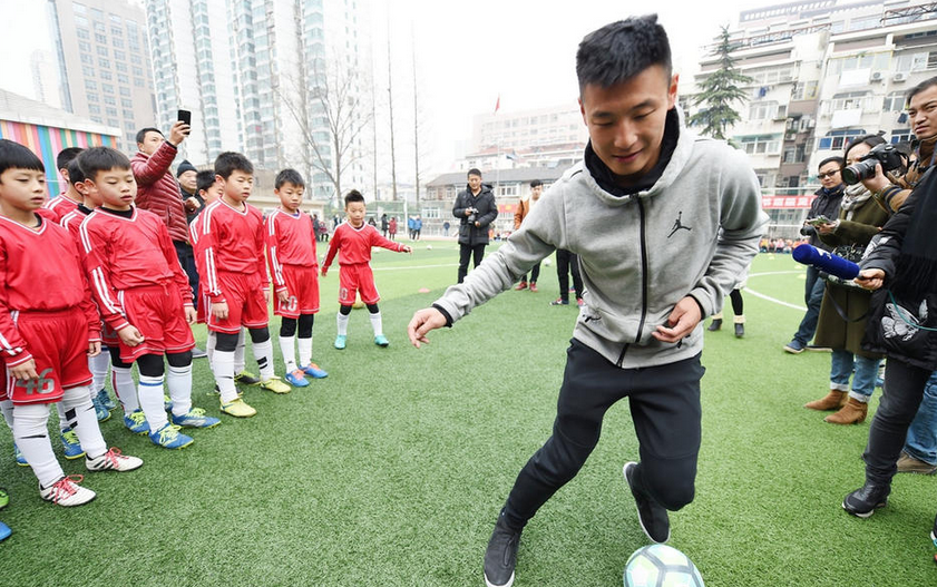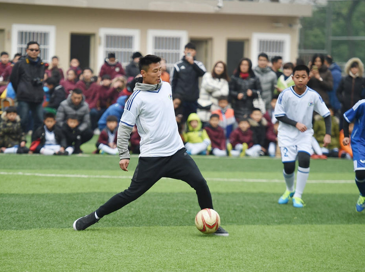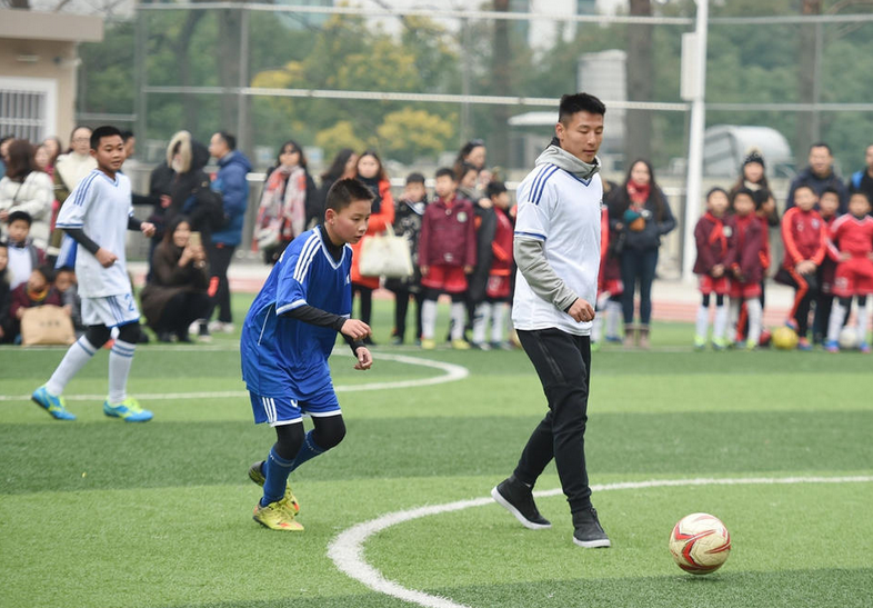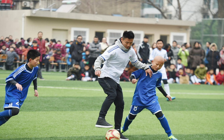武球王不仅指导孩子们的足球训练,而且与孩子们进行了分组对抗赛。