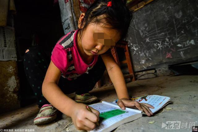 小女孩秦飞燕今年7岁,家住河南省林州市的农村,爸妈3年前离异,爸爸为了还债,外出打工留下她和姐姐与70岁的奶奶在农村生活,她们住在一间破旧的土坯房里,由于家庭贫困,家里连个像样的桌子都没有,每天放学后秦飞燕只能趴在地上写作业。