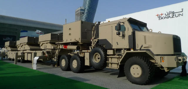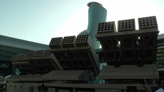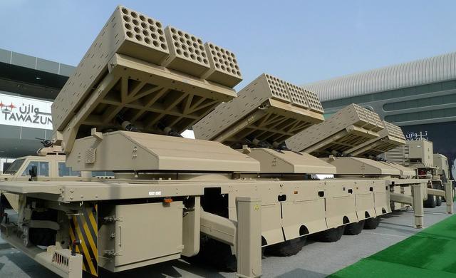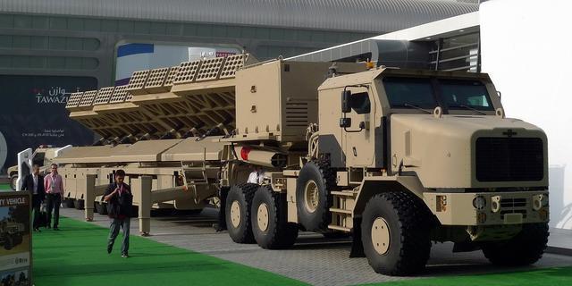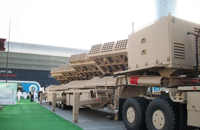 阿联酋的约巴龙火箭炮系统。该系统上总共有4个火箭弹发射架,在2分钟内可以打出240发122毫米火箭弹。