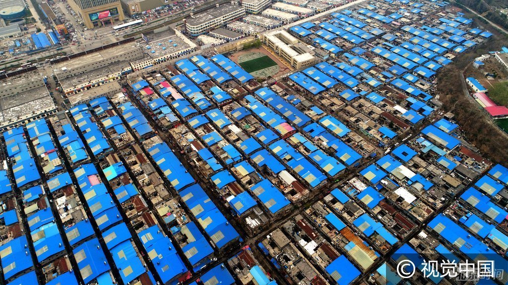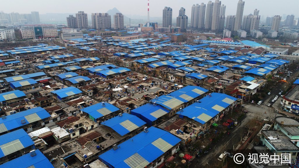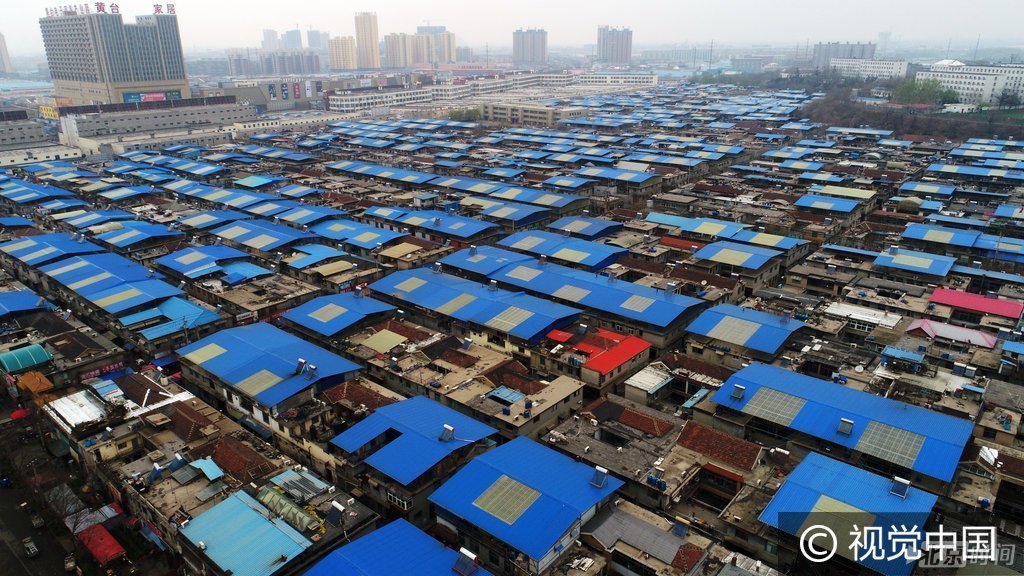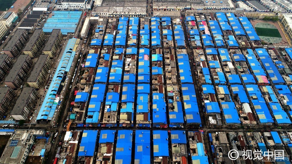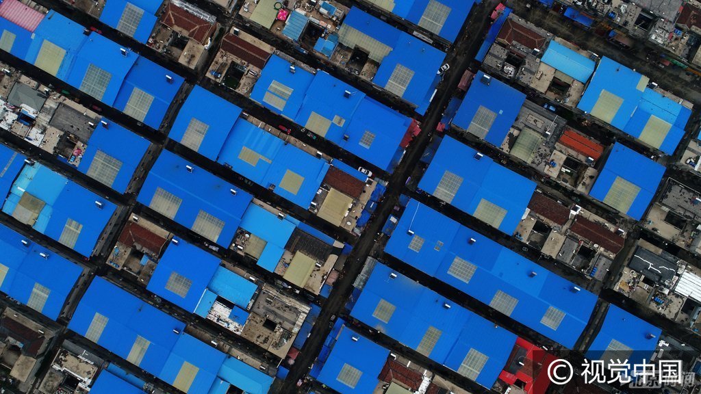 数百座二层小楼的顶部,居民自费安装了蓝色彩钢板和灰白色透明采光窗,用于防晒和防雨,从百米高空俯瞰,灰白相间的屋顶密密麻麻。
