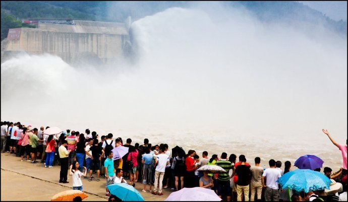 河小浪底调水调沙从2002年开始,每年都会吸引数百万中外游客前来游览。