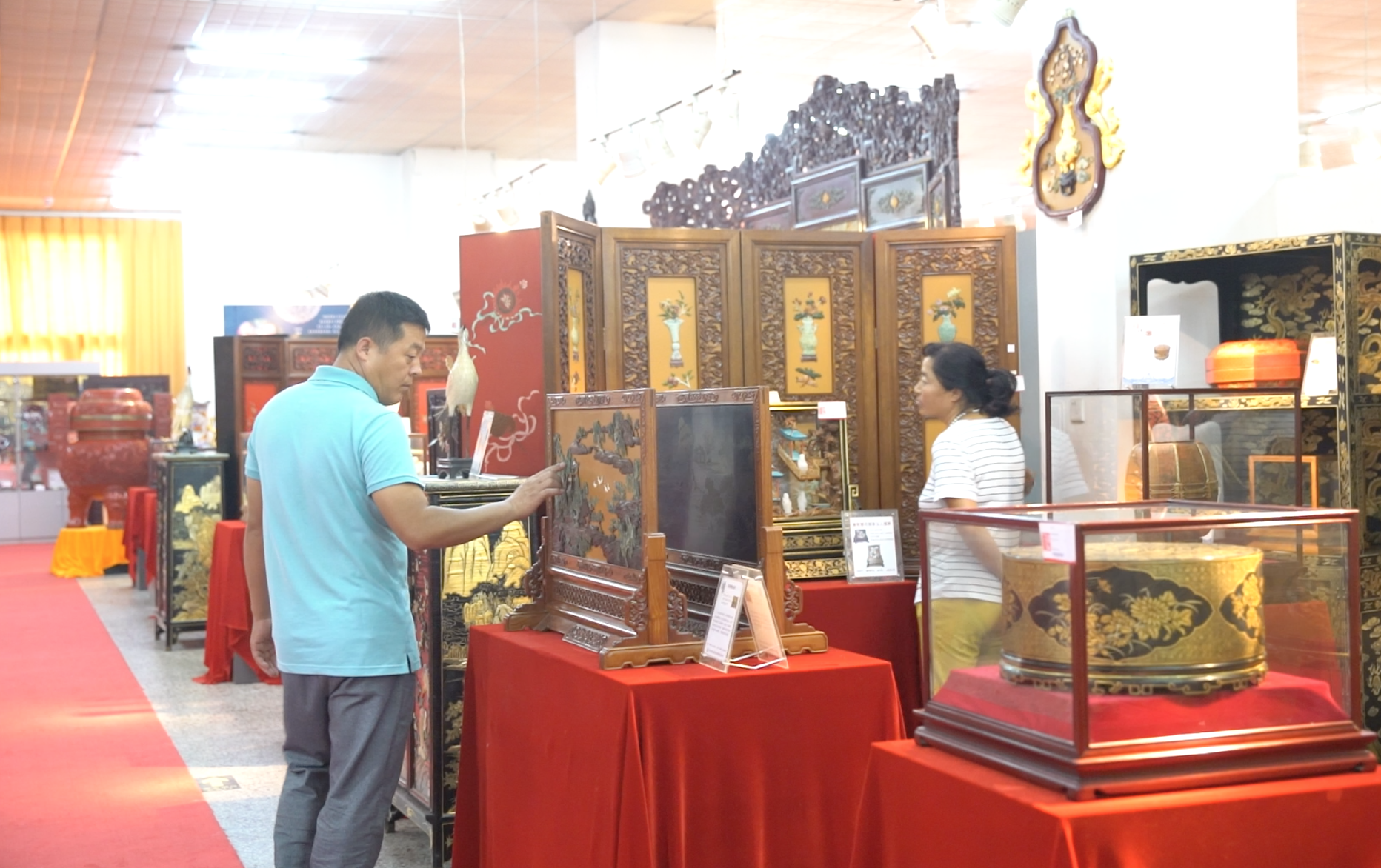 8月18日,“漆韵京华·第三届中华屏风文化展”在京开幕,记者在现场看到,展厅陈列了各种题材、多种工艺、不同形制、规格不一的各类屏风近千件。