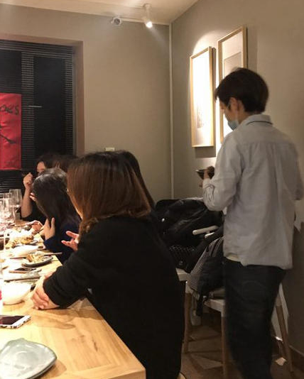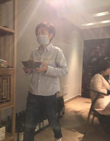 当天许飞穿着朴素毫无星相,再加上戴着饭店里要求的卫生口罩,不仔细辨认根本看不出是昔日舞台上熠熠发光的歌手。