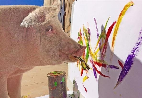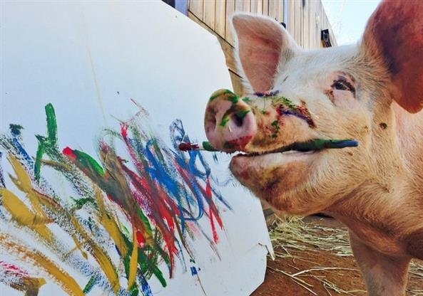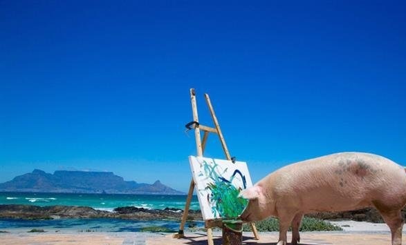 在南非就有这么一头小猪,从屠宰场被救了出来之后,竟然成了一名艺术家,能够与女主人朝夕相伴。