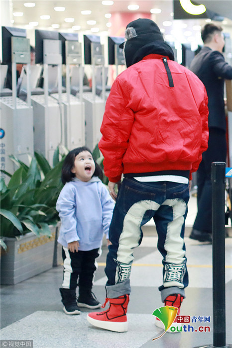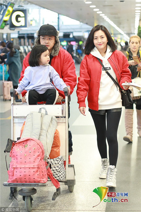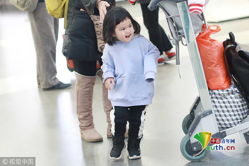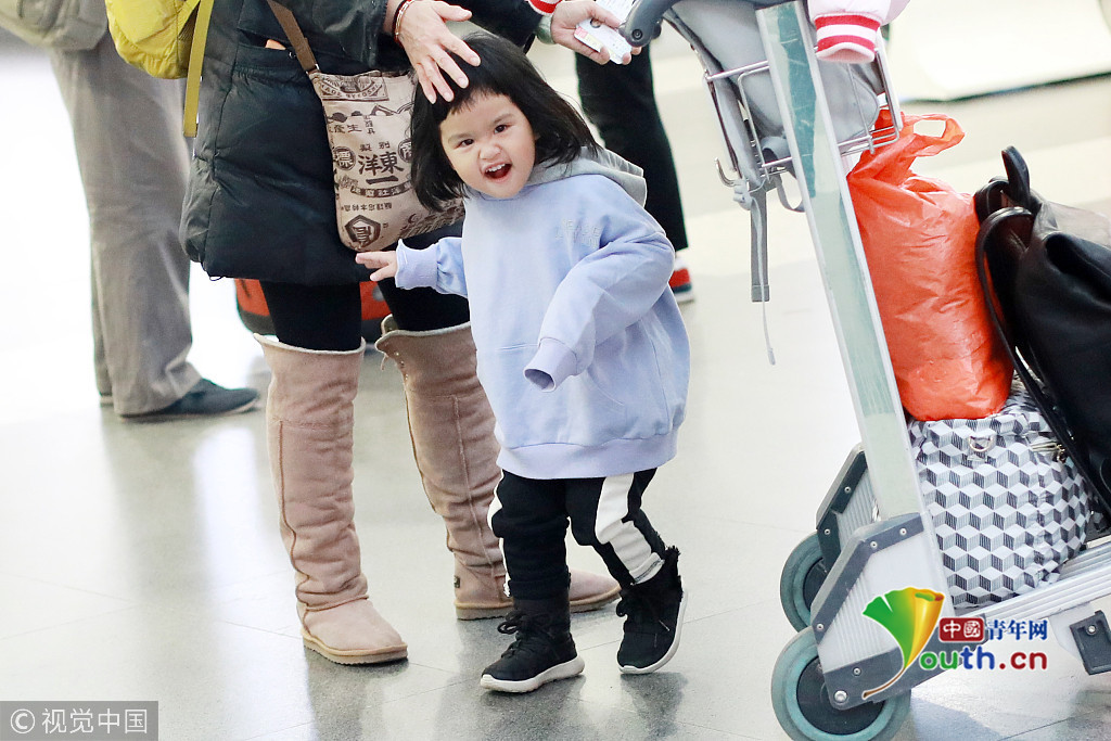 日前,包贝尔、包文婧、女儿包可艾(包饺子)一家现身北京机场。包饺子扮鬼脸变“行走的表情包” ,包文婧比剪刀手和老公穿情侣装。