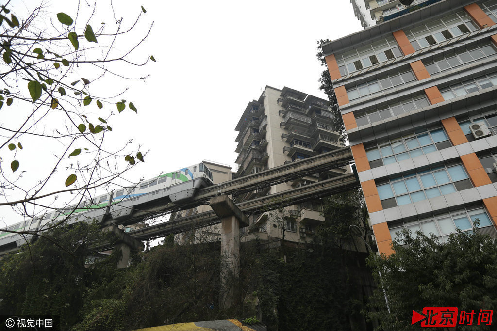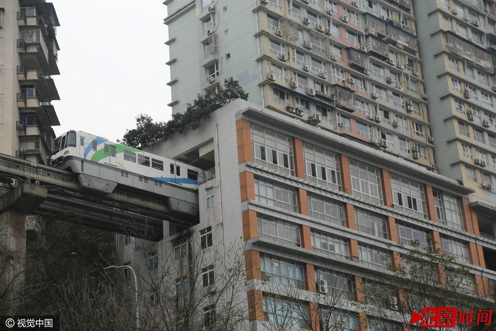 重庆轻轨2号线在李子坝站“穿”居民楼而过,山城的复杂地形造就了全国绝无仅有的震撼景象。