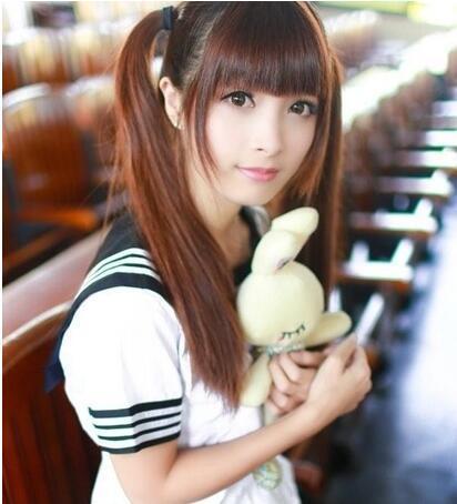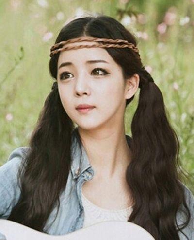 韩国女生简单的双马尾发型,厚重的刘海微微内扣,打造出十足的质感,非常的修颜减龄。