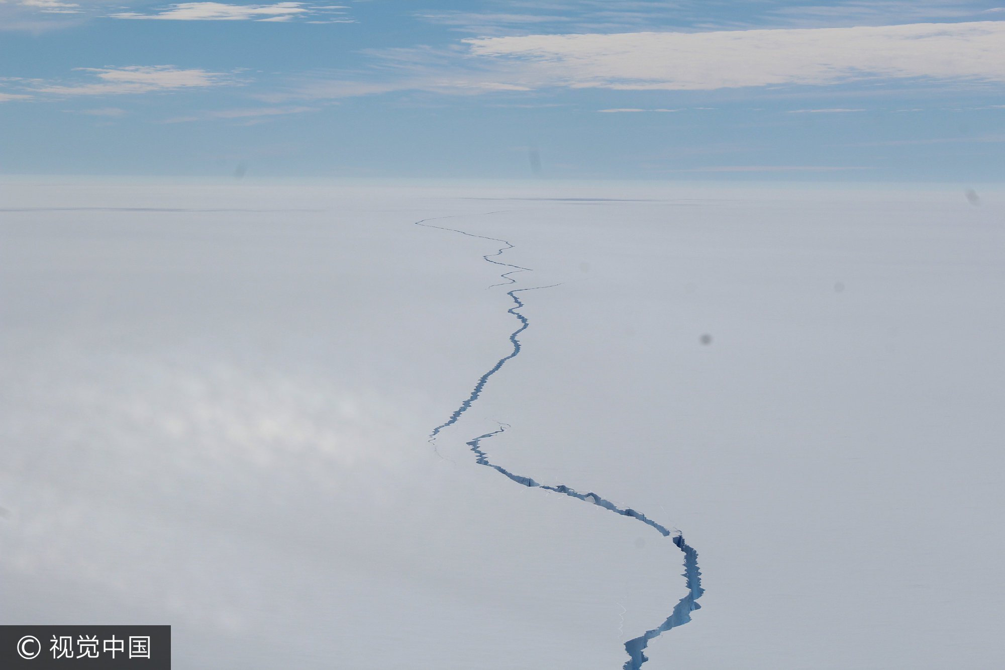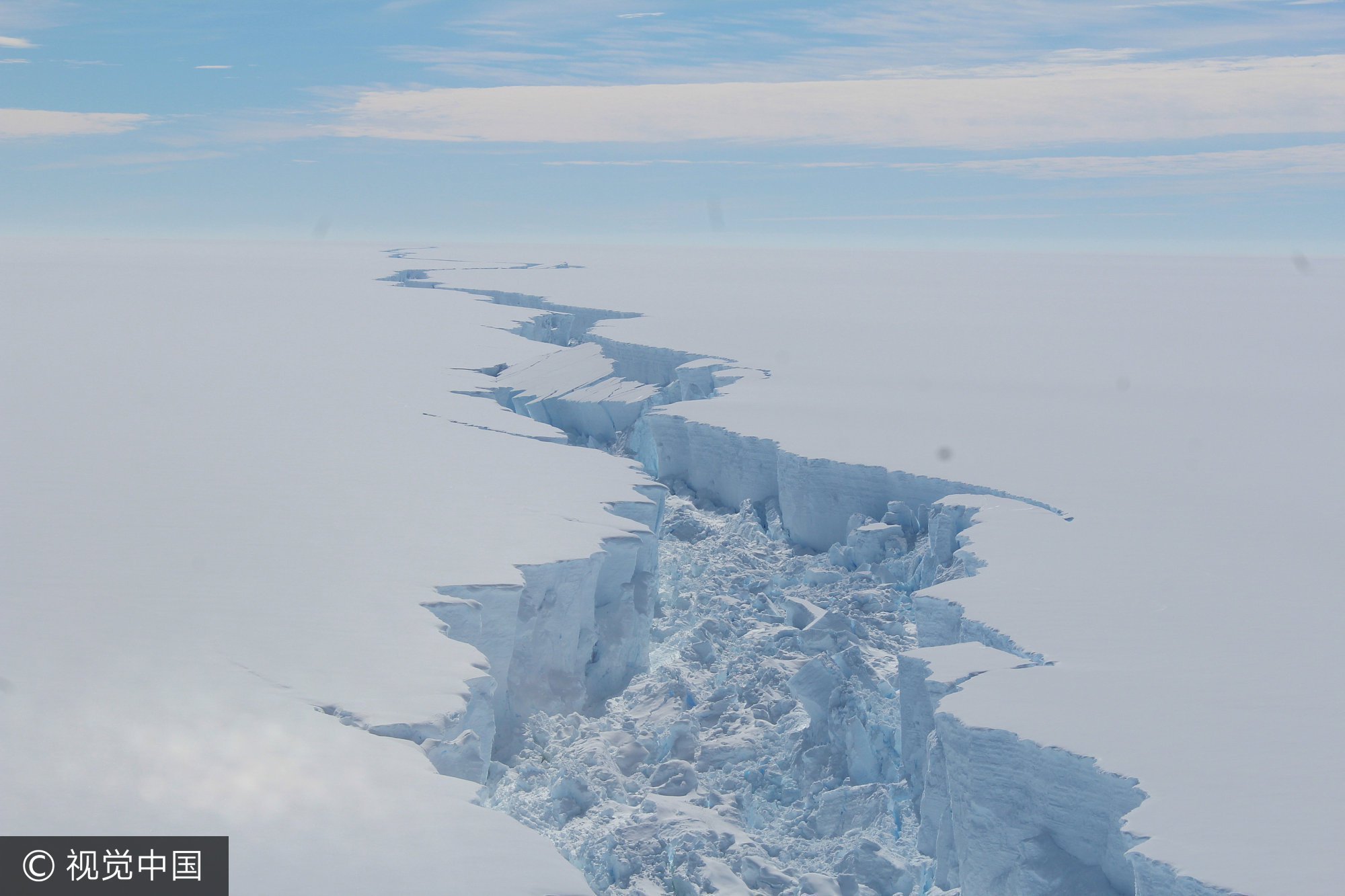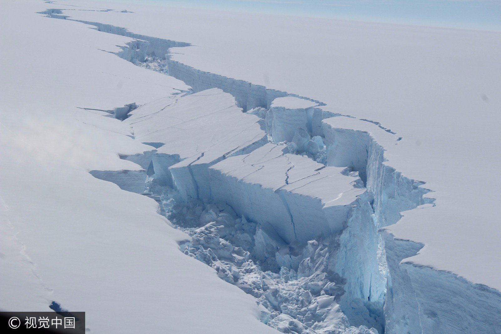 南极洲冰架破裂形成面积约有四分之一威尔士的冰山。这一严重后果可能使整个冰架迅速崩裂,造成海平面上升。