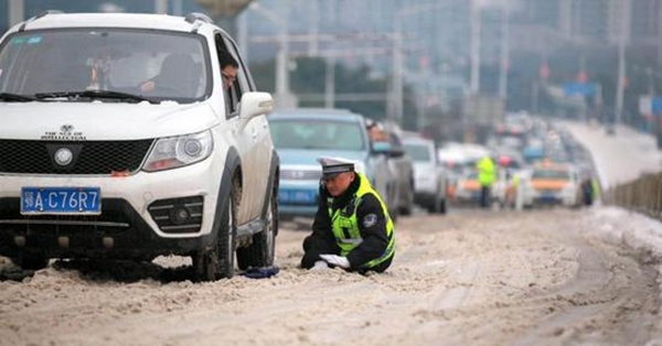 1月27日凌晨,武汉降雪量突然加大,清晨6点多,曹勇即与十多名队友一起出门巡查。上午8点多,位于内环线、连接汉阳区与硚口区的江汉桥,桥面积聚厚厚一层冰雪。