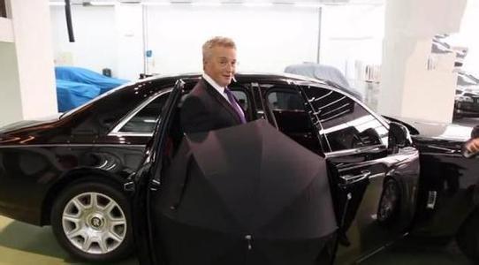 这把雨伞的主干是用纯银定制的,伞托上刻着劳斯莱斯的车标,用料非常讲究、扎实,还采用十分轻薄的优质布面。