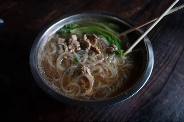 权二粉店在古镇外。也是当地特色,豆豉粉。其实豆豉的味道不浓,整碗粉的味道偏淡。