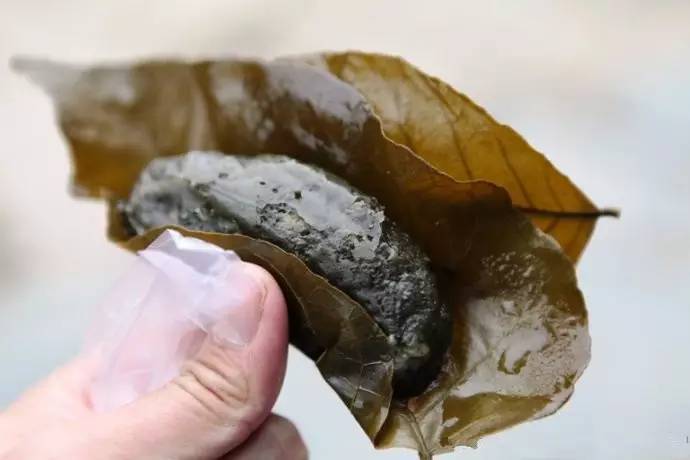 艾糍粑,艾叶做的糍粑,里面是花生、芝麻的馅料。个人感觉一般。