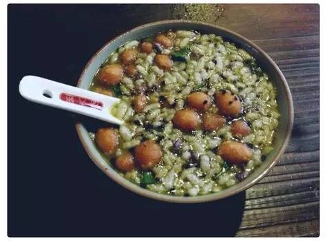 黄姚油茶,制作方法以老叶红茶为主料,用油炒至微焦而香,放入食盐加水煮沸,多数加生姜同煮,再加入各种果仁、油炸丸子、炒米等,口感丰富,咸香中带着甜甘,在我看来颇似潮汕的菜茶。