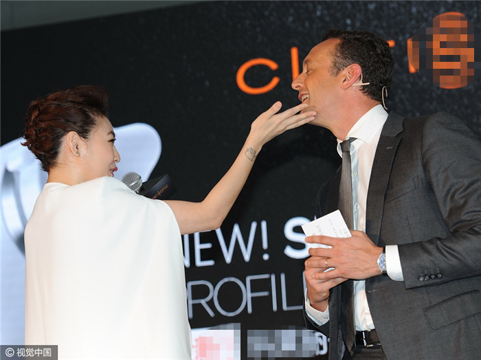 上海,6日,小S出席某品牌活动,她身穿白色短裙落座翘美腿露大腿根,轻搭老总肩膀亲密热聊尽显殷勤。