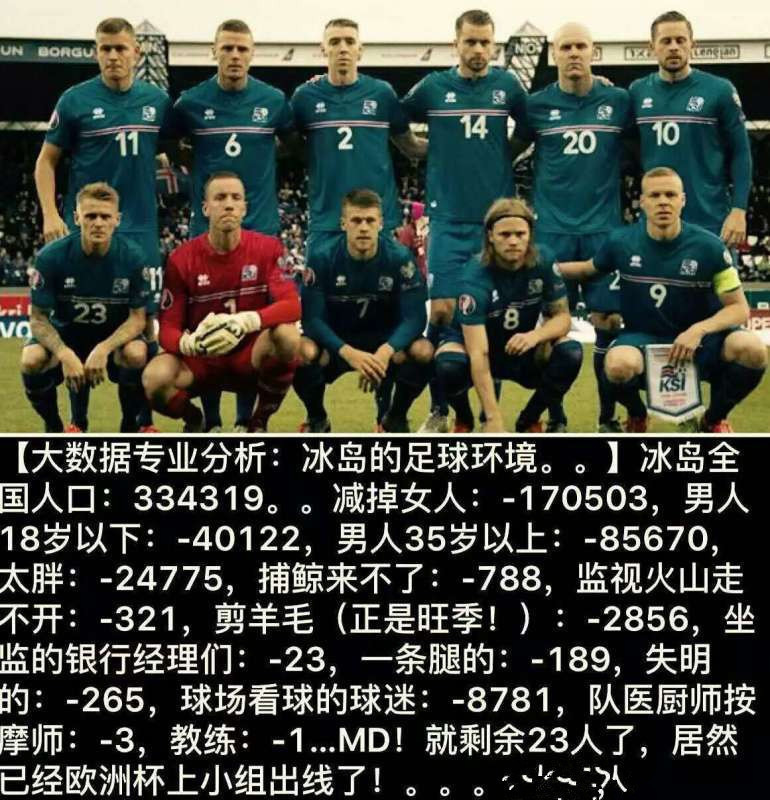 这对于一个全国人口只有33万(相当于中国某些小县城的人口),冰岛只有32万人口,央视主播们笑称“人口数量约为北京朝阳区的1/10”。4年前世界排名比中国队还要低的球队来说,简直是创造了奇迹!
