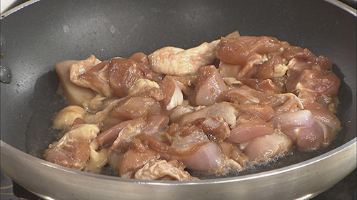 步骤1:首先将鸡腿去骨切块,加盐糖、料酒、淀粉、酱油腌制,然后下锅滑炒成熟,捞出备用。