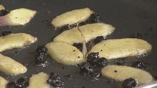 步骤2:锅中下入豆豉煸炒出香味,再加入大片的仔姜片煎制。