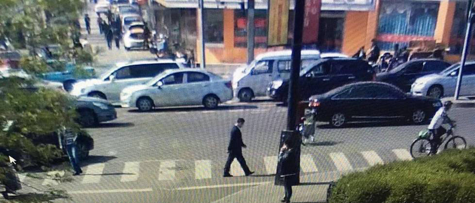 5月10日9时左右,受害人从家到单位。9时17分,受害人经过十字路口,沿北都街路北人行便道由东向西行走。几乎在同一时间,嫌疑车辆启动,经过岗区西侧斑马线,调头停在北都街路北便道30秒。待受害人前行约200米后,嫌疑车辆再次启动接近受害人,从后边将受害人撞倒后,将其推进车里。