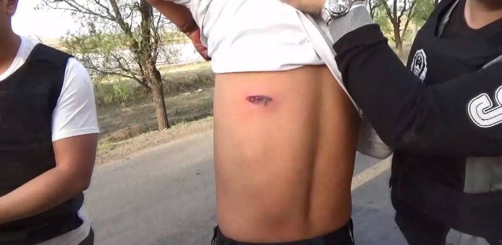 枪战期间,两名嫌疑人被当场击毙;受害人被嫌疑人开中一枪,导致肩部受伤,经医院检查无生命危险;4名民警英勇负伤,目前正在医院接受治疗,无生命危险。图为解救人质现场,受伤的特警。
