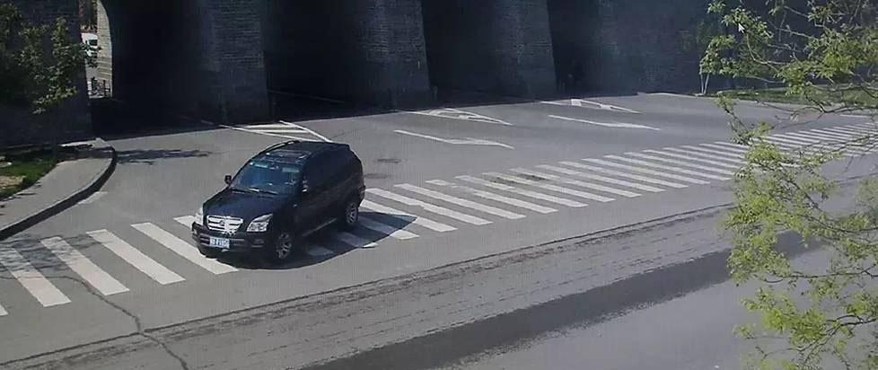 5月10日9时20分,嫌疑车辆驶入永泰东门,逆行向东行驶,经和阳南门驶出城墙。9时24分,经兴云桥继续向东行驶。10时02分、14时45分,嫌疑车辆两次出现在大同县吉家庄村口。2名嫌疑人将受害人劫持后,用胶带纸蒙住双眼、缠住双手,搜身,将其随身携带的手机拿走,同时,其中一位嫌疑人向车外开了一枪,声称有50发子弹。随后,威胁受害人,让其家人准备3000万美元赎金,最终“协商”至2000万美元。谈妥后,其中一位嫌疑人拨通受害人公司总经理的电话,受害人按照嫌疑人要求,让其准备赎金,约定5月11日上午9时交付。图为永泰门东侧摄像头拍下绑匪劫持受害人后驾车使出老城区。