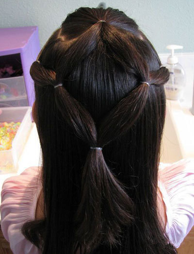 这个不难吧?换上彩色皮筋,扎个小花,不一样的美娃。