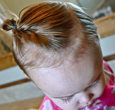 第一步将头发全部梳至头顶,皮筋固定