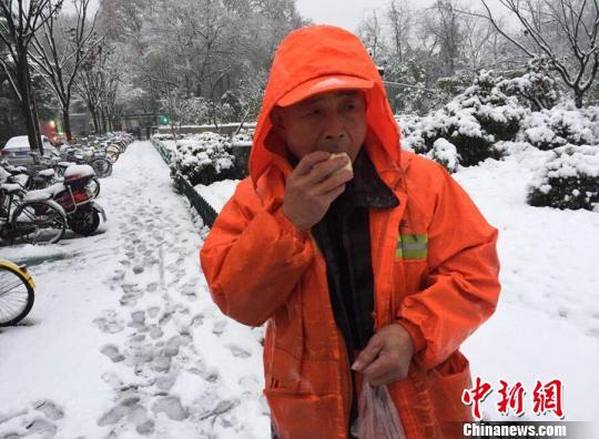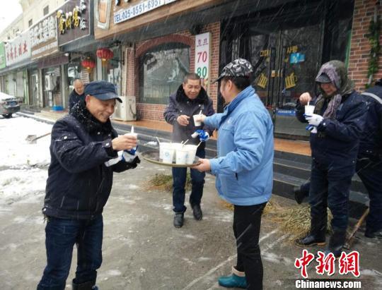 4日的凌晨三点,遍布全城扫雪“大军”就已投入工作,四个小时后的早晨七点多,这些大雪中“最可爱的人”才休息下来,吃上热乎乎的包子,暖暖冻僵的手脚。