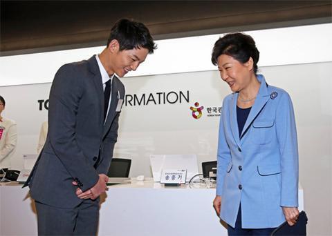 近日有韩媒曝出,朴槿惠曾在建设政府主导的韩流体验馆期间,指示特殊照顾宋仲基,包括为其制作影像资料、人形立牌,以及提高周边产品的价格等。