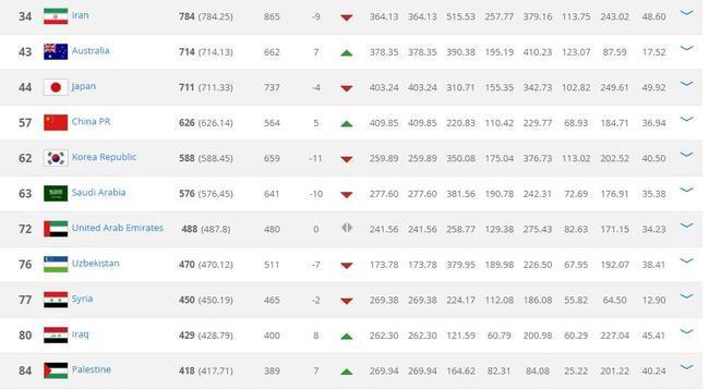 10月16日,国际足联官方发布了新一期的世界排名,中国男足在这一周期又有进步,已经超越韩国,上升到了亚洲第四的位置。
