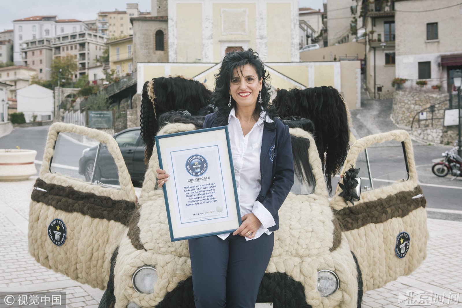 意大利帕杜拉,一位意大利发型设计师Maria Lucia Mugno花费了超过8万英镑来装饰自己的车子,这让她获得了吉尼斯世界纪录。