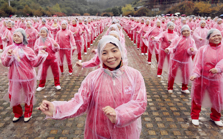 2016年11月7日上午10点00分,在以武汉为分会场,总共14个重点城市的不同场地上,广场舞大妈、大叔们共同起舞,在“西班牙斗牛舞”、“生命之杯”的乐曲中,一起挑战最大规模排舞(多场地)吉尼斯世界纪录。此次武汉会场设置在黄陂云雾山景区,由于下雨,所有舞者均身着雨衣,在寒风冷雨中站立三小时,坚持完成了此次挑战。