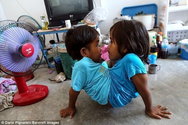 医生说她们是有可能通过手术成功分离,可是两位坚强的小姑娘已经学会了如何走路、穿衣服、吃饭、甚至还可以骑车。