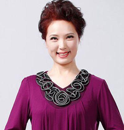 这款齐刘海低盘发发型,光滑精致,给人优雅婉约感,让大脸中老年女士显得年轻而甜美,韩式甜美的气质盘发,配以一条深蓝色蕾丝连衣裙,美美的又庄重,不会有装嫩的嫌疑。