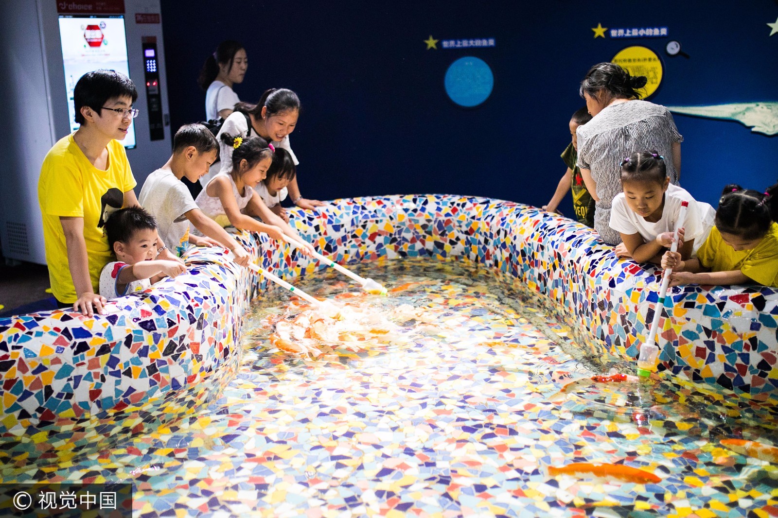 鱼儿会争相前来吸食奶瓶里的食物。会“吃奶”的鱼让人感觉很新奇,许多人都很好奇,喂食的生意也很好。