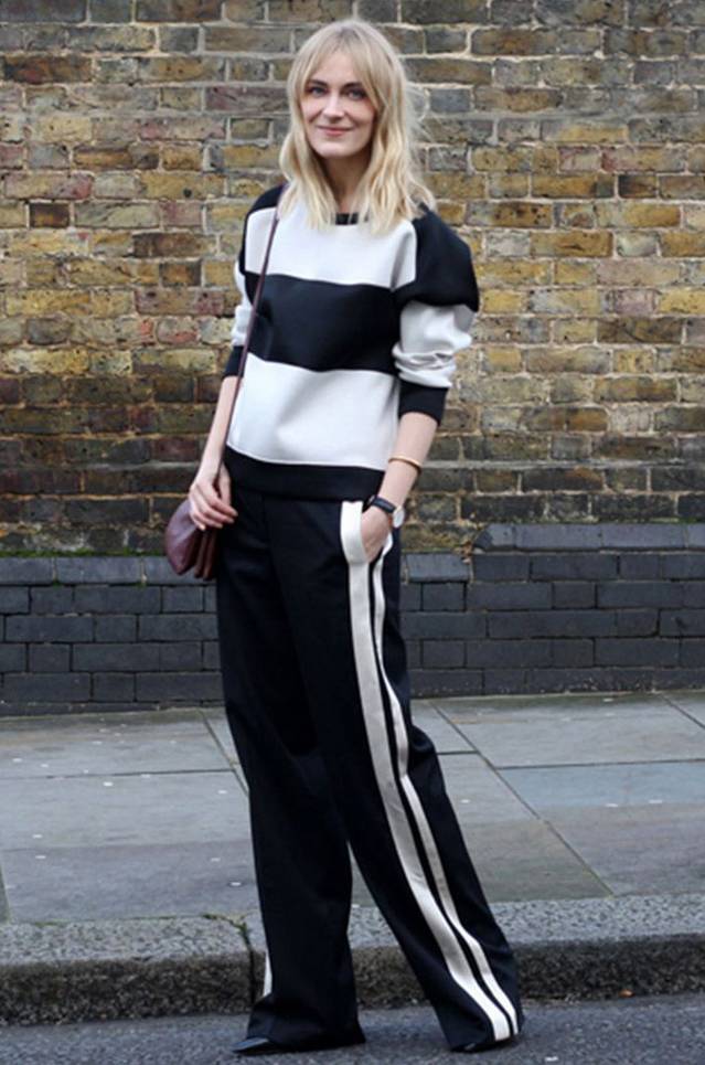 侧面条纹裤,类似小时候穿的校服裤和运动裤的结合版,现在竟然成了时髦单品,不仅有了高逼格的英文名Side-Stripe Pants。