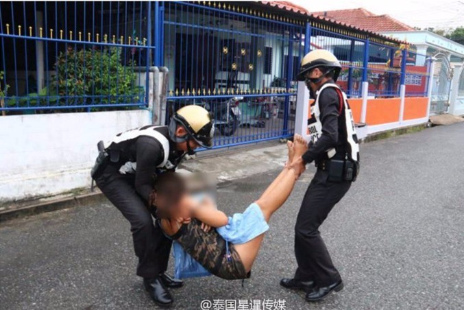 4月6日,据泰媒报道,泰国春武里府索大义县某路旁一女子饮酒过度,发酒疯后裸身倒插在水沟,双脚朝天。