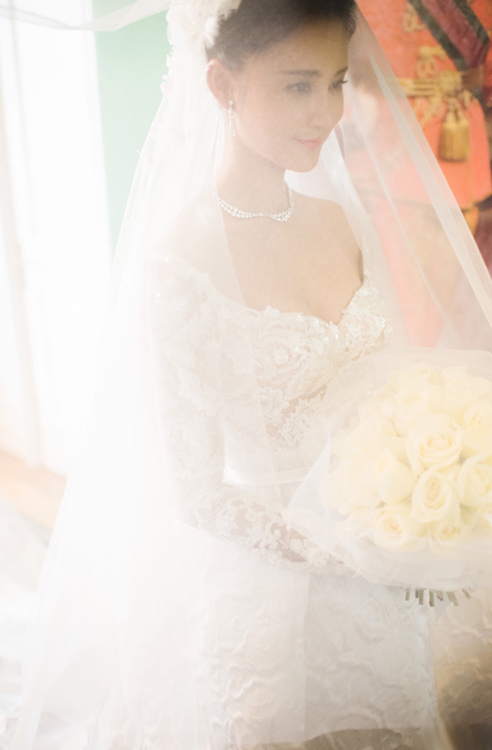 蕾丝深V婚纱,新娘丝毫不吝啬秀出自己的好身材,也许只是为“悦己者容”。