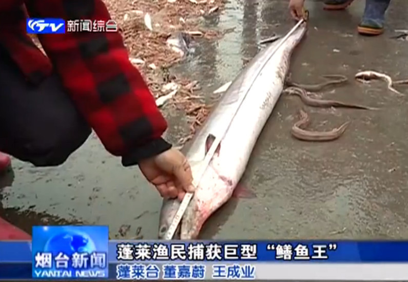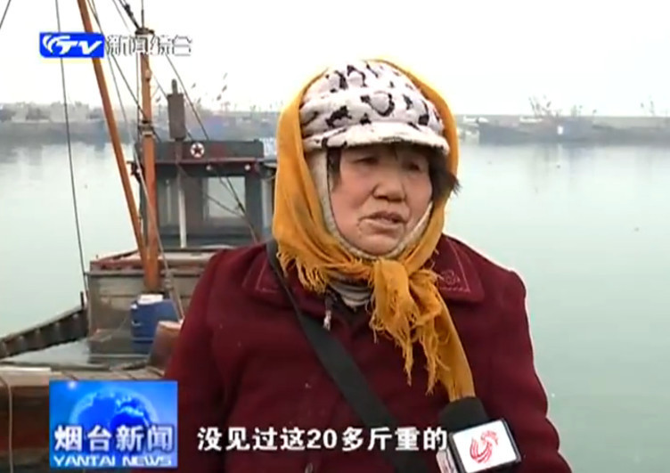 闫庆禄介绍,他今天早晨4点多钟出的海,由于雾大,也没有跑远,早上6点多钟,他收网时,就发现在鱼虾中,有这么大一条鱼,当时他也是乐坏了。“在长岛和蓬莱之间,水深在38-39米深,这主要是封海封的好,这个环境对鱼成长有利。”