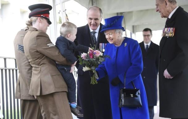 小男孩拿着花企图跑开,“我不献了!我要回家!有完没完啊!”英女王不知如何是好,只好呆呆地等。