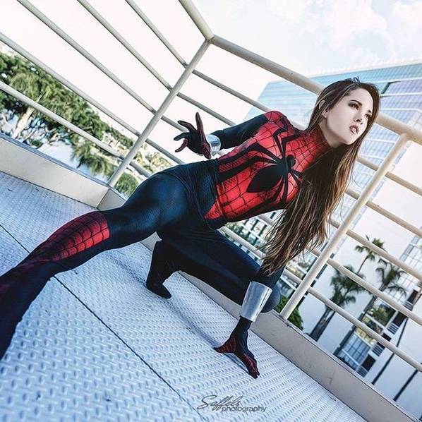 《蜘蛛侠》系列新电影《蜘蛛侠:返校季》将于2017年7月7日上映。近来有国外女粉丝就分享了自己的《蜘蛛侠》Cosplay作品,引来网友一片点赞。此次发表作品的女Coser名为Hendo,姣好的面容和苗条紧致的身材简直就是为穿紧身衣而量身打造。因此,她所演绎的蜘蛛侠显得相当娇媚。