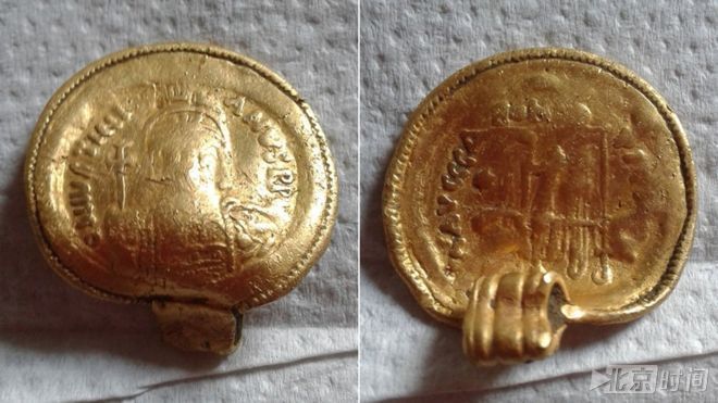 一枚由拜占庭硬币铸造而成的罕见的六世纪黄金吊坠,在1500多年后被一个金属探测专家发现。