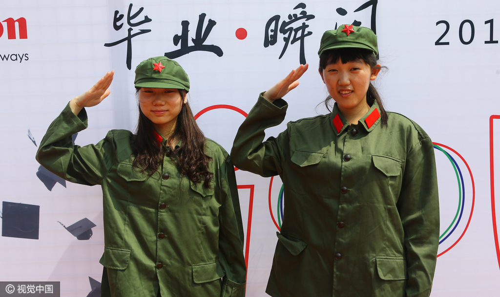 2015年06月11日,天津,一年一度的毕业季如约而至,学子们纷纷在校园内拍摄毕业照,为青春留下最美的记忆。中国民航大学3位90后美女飞行员毕业生身着统一制服,在校园内拍摄个性毕业照,霸气十足。